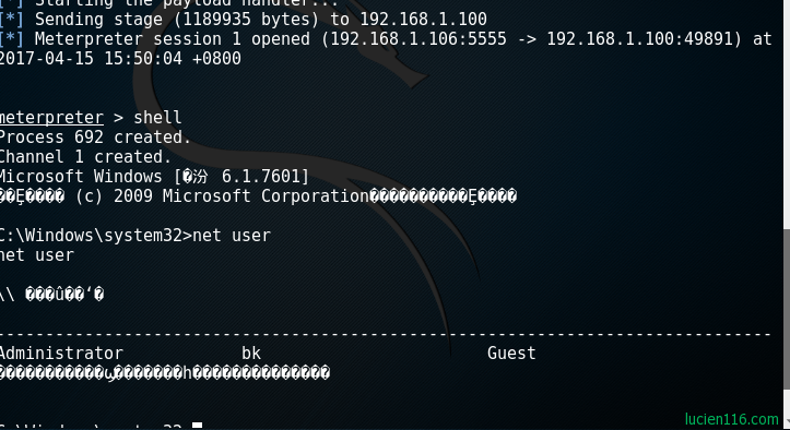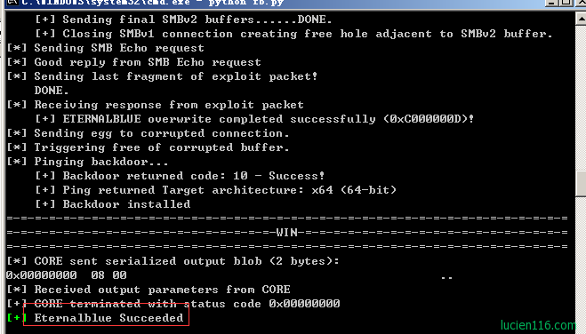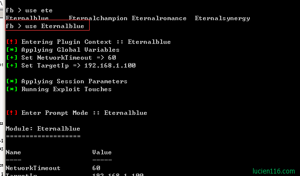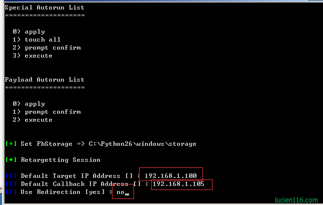以下在攻击机win2003上执行fb.py的具体命令重要命令如下,其他命令都用回车执行。