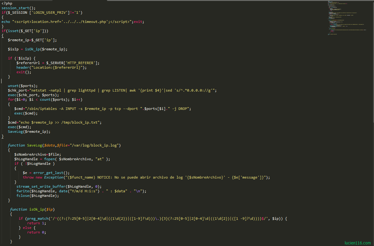 所以我们需要对用户递交的数据进行过滤,让用户只能提交正确的数据(IP地址)。通过定义一个isOk_ip()函数,对用户提交的数据利用正则表达式过滤,便避免了这个漏洞。