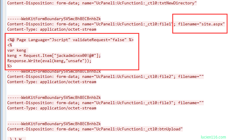 之后经证实,由于该页面未对上传的文件做任何检测和限制,攻击者正是通过此页面轻松上传了这个一句话木马文件site.aspx。