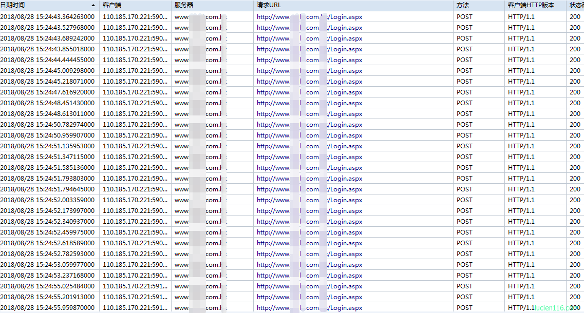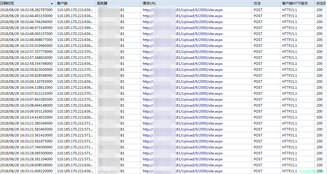 对HTTP访问日志的分析后发现,攻击者访问频率最高的为http://www.xxx.com.hk/Login.aspx和http://xxx.xx.xx.77:81/Upload/9/2000/site.aspx两个页面,如下图: